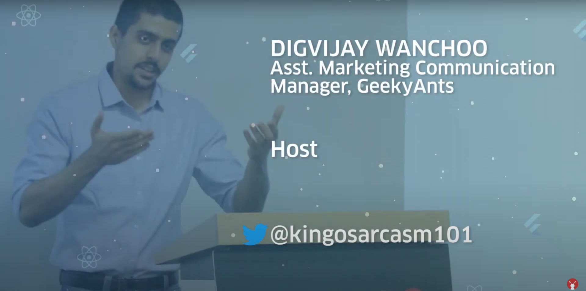 With the show on the road, the first speaker on the cards was Manish Kumar, engineering manager at Jio. He presented his expertise on Architecting With React. His talk was focused more on React and how React can be overwhelming to begin with. He suggested ways to make it easier on new devs and shared the mantra behind picking React based on what matters to businesses and not on whims. He also shared some tips and tricks to be a more efficient developer and pointed out the things that need attention during development.