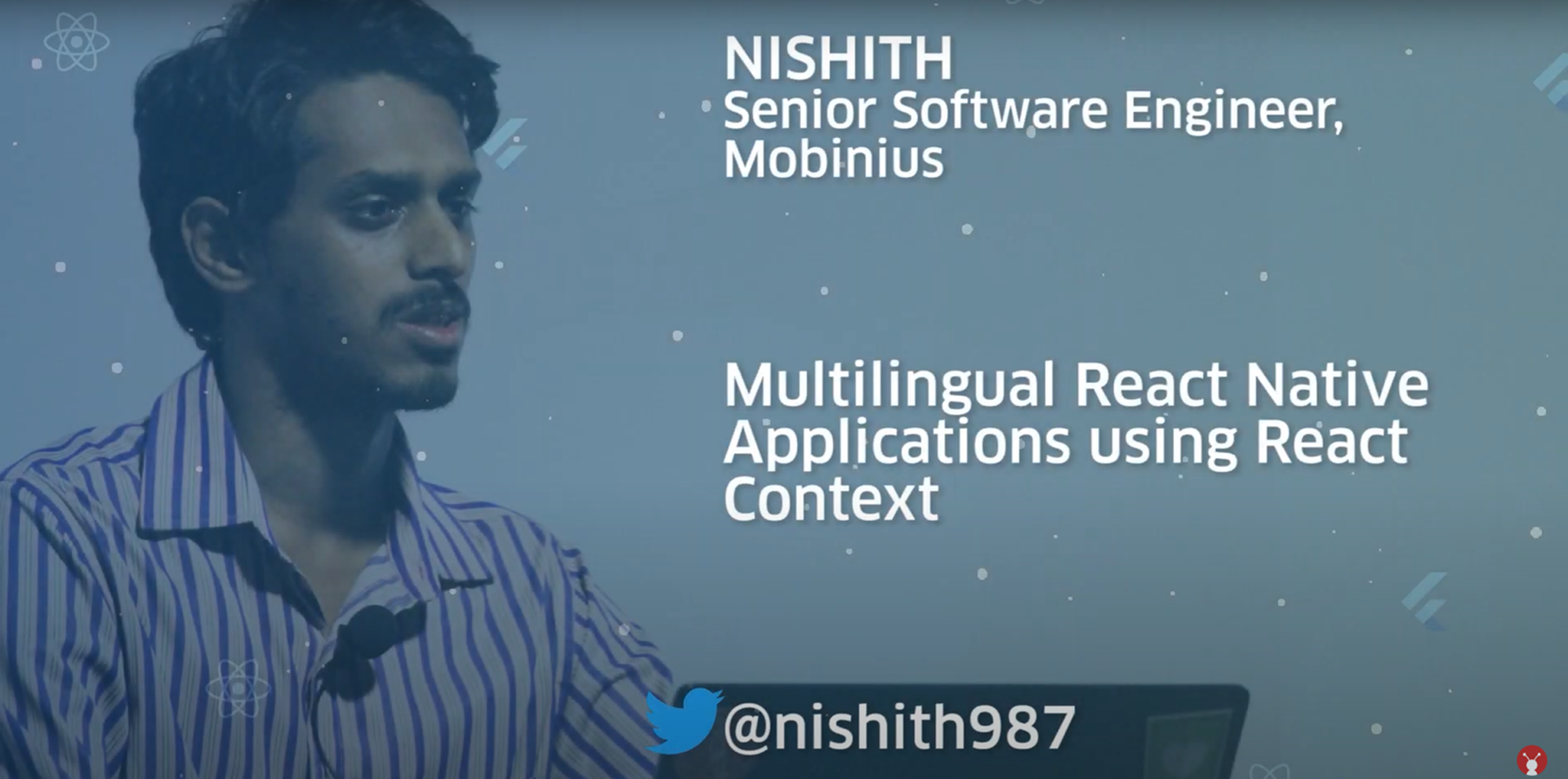 Nishith was the next speaker on schedule. He is a front-end developer at Mobinius technology and loves to travel, contribute to open source projects and experiments a lot. He talked about Building Multilingual React Native Apps Using React Context, a topic that was driven by his personal experiences with clients and developing products for them. Right off the bat, he spat some facts in the face of the crowd, telling them how nothing ever goes to plan. He shared the challenges he faced during the development of the application and how he dealt with changes on the fly using a context API. He then gave the audience a live demo using expo and showed them first hand the performance of the application.