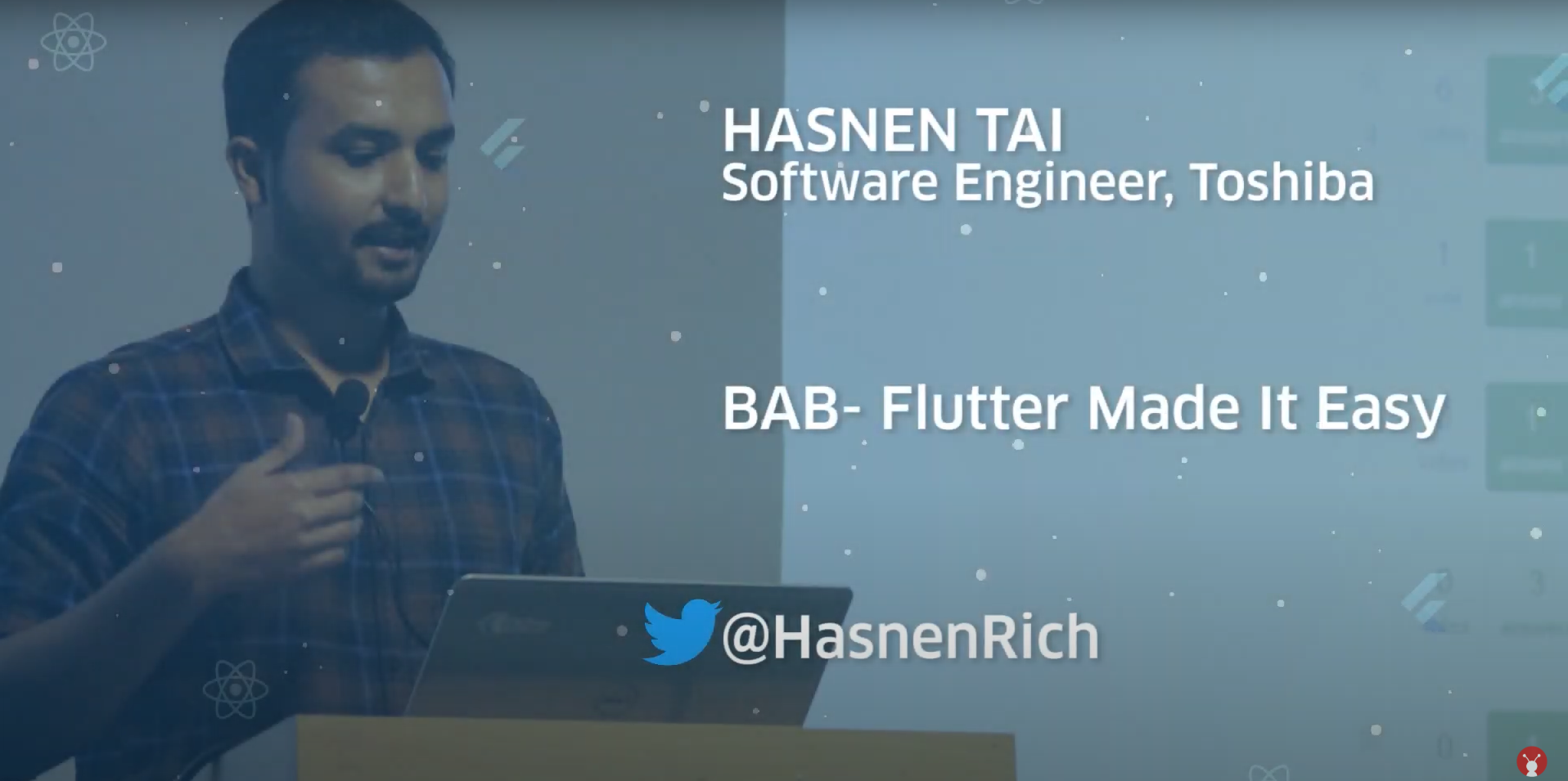 Hasnen Tai was the next person that I introduced to speak to the crowd. A YouTube celebrity who runs the channel Trending Codes and an associate software engineer at Toshiba, he shared how Flutter came into his life and made him transition from a Web to a Flutter developer. He talked about his journey through his pet project, an app called Book A Book that he built to facilitate easy renting facilities on literature. As a part of his programme to learn Flutter, he built his app and talked about the architecture of the app, the methods he applied to manage data and implement the different features of the app and how he implemented state management.
