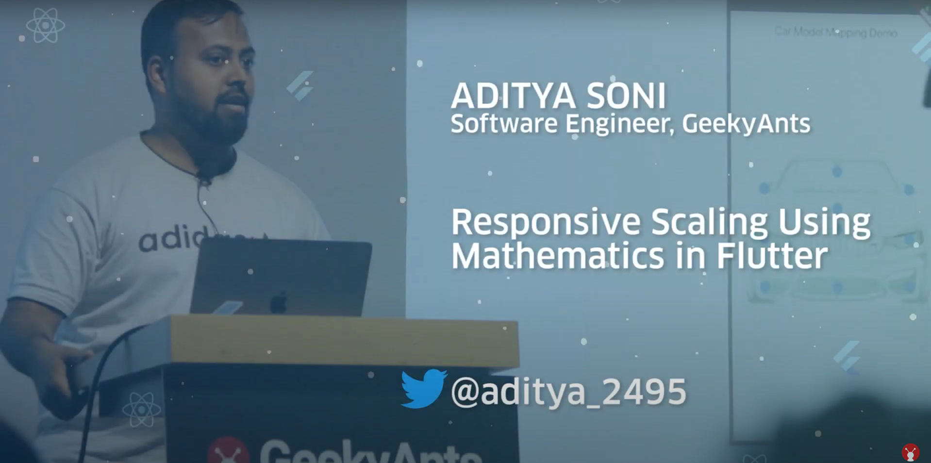 From team GeekyAnts, Aditya Soni stepped up on stage to share his experience of solving a problem in Flutter using Mathematics. His talk was titled Relative Scaling Using Mathematics In Flutter. Scaling has always been a major issue when it comes to designing apps to be responsive and he talked about how he faced a similar issue while working for a project. He then devised some mathematical formulae to solve that problem and he shared his genius with the attendees while pointing some important facts that are usually missed, such as accessibility features using a live case study.