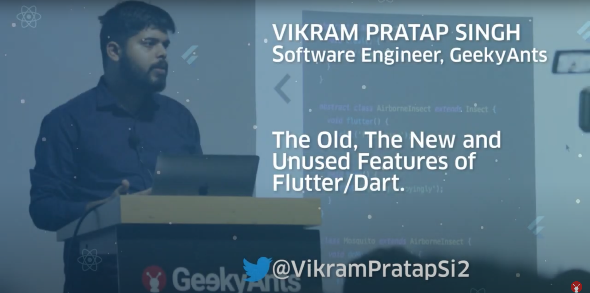 The last individual to grace the stage was Vikram Pratap Singh, software developer at GeekyAnts, who brought to light the unused features of Flutter with his talk titled The old, the new and the unused features of Flutter. He talked about Spread collection operator, Mixins, Flutter compute function, Dart extension methods and how to use them. Before ending his talk, he revealed that he had not prepared slides for the talk, instead he had been presenting on a desktop app made in Flutter and the crowd was taken by surprise. He urged the attendees to use Flutter more extensively and not just for Mobile App development.
