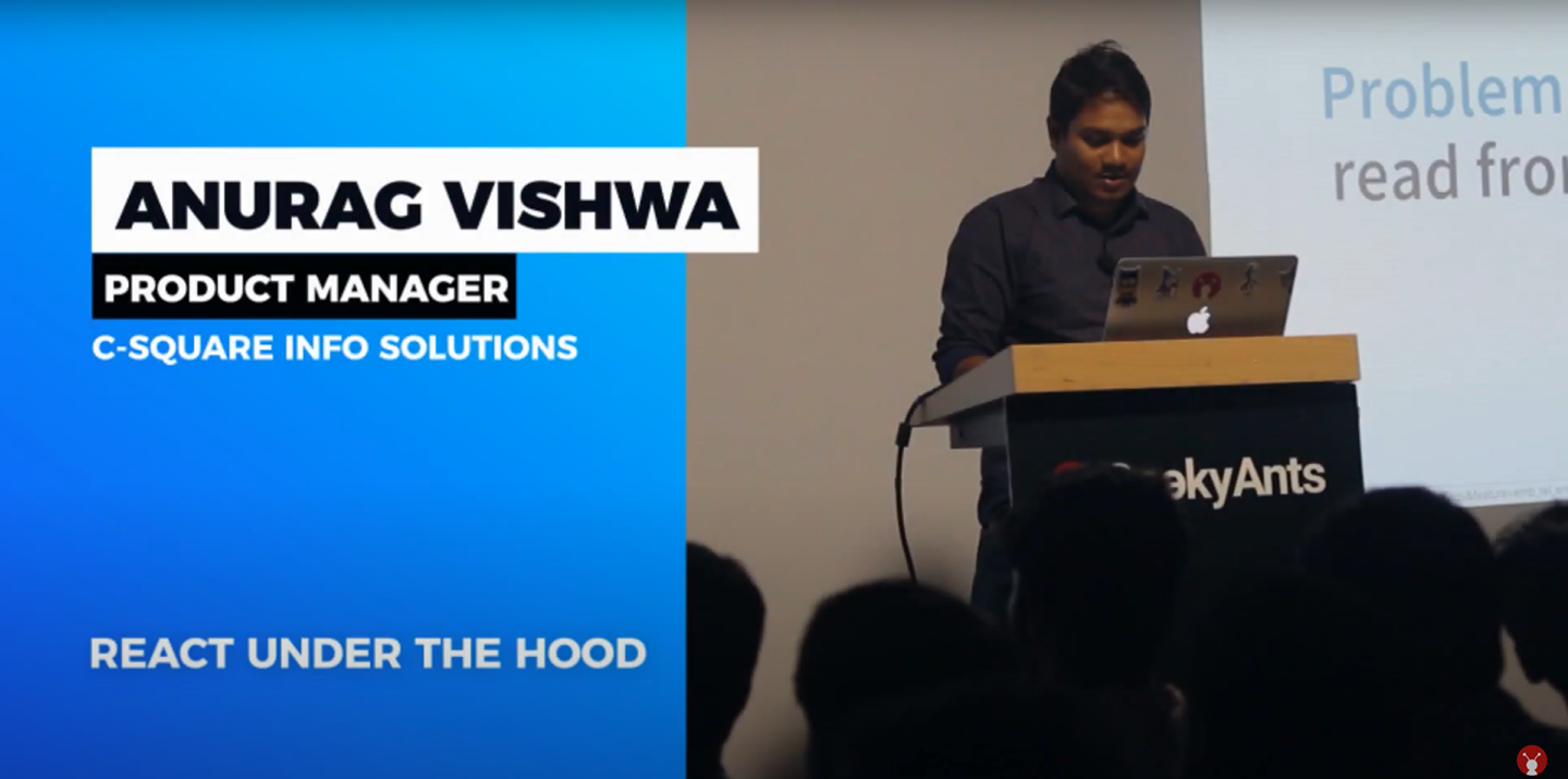 Anurag Vishwa was the first speaker on the cards, tackling the machinery under the hood of React Native. He started off with discussing the benefits of choosing React as a JS framework. He went on to discuss Virtual DOMs in depth and what they achieve, how they are rendered. He then continued discussing Real DOMs and compared them with Virtual DOMs and ended by touching upon React 16 and the ‘Fibre’ feature that it brings with it.