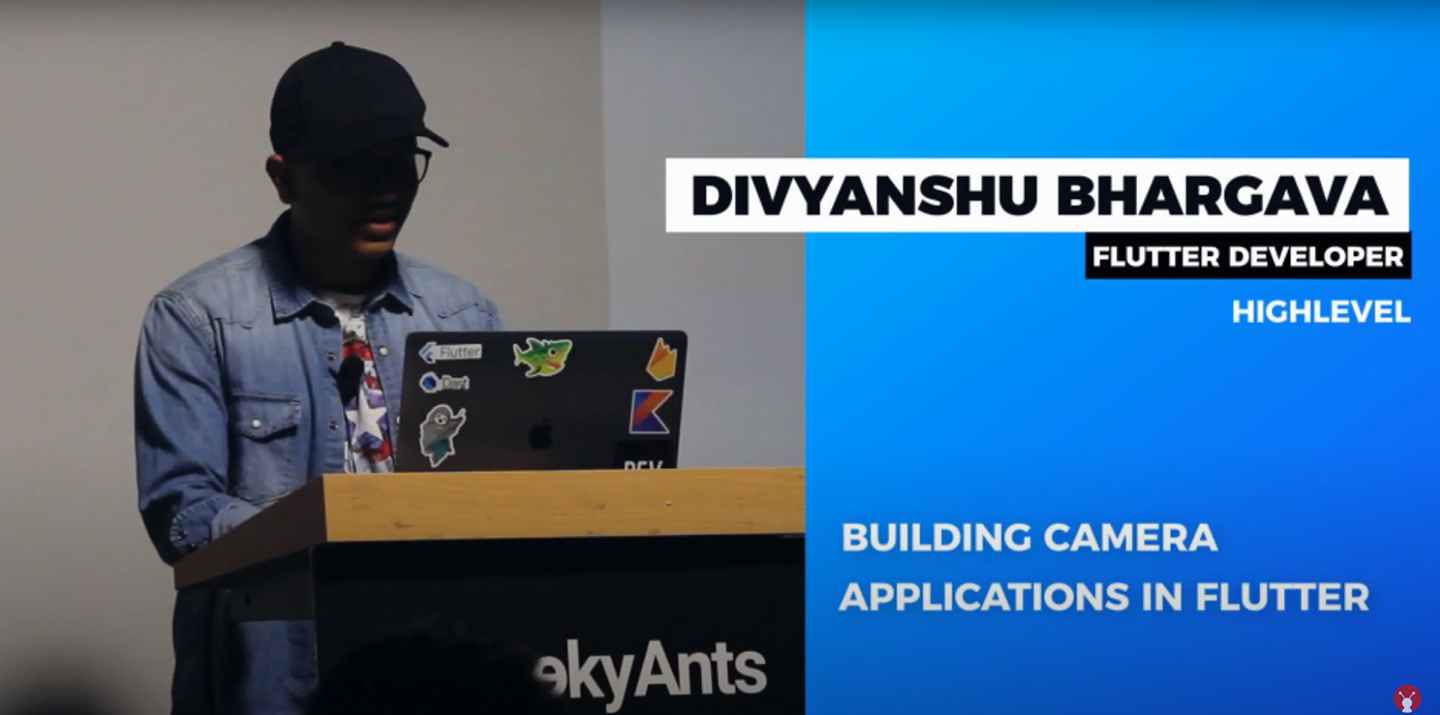Next on the stage was Divyanshu Bhargava, whose aim today was to let people know that he works from home and wears pants sometimes & also make building camera apps in Flutter easy to understand. He began by breaking down how a camera works and explored the options that you have if you want to build an app that uses a camera in Flutter. Then he shared code of how to invoke cameras and capture images and videos which can be used in any application that uses a camera.