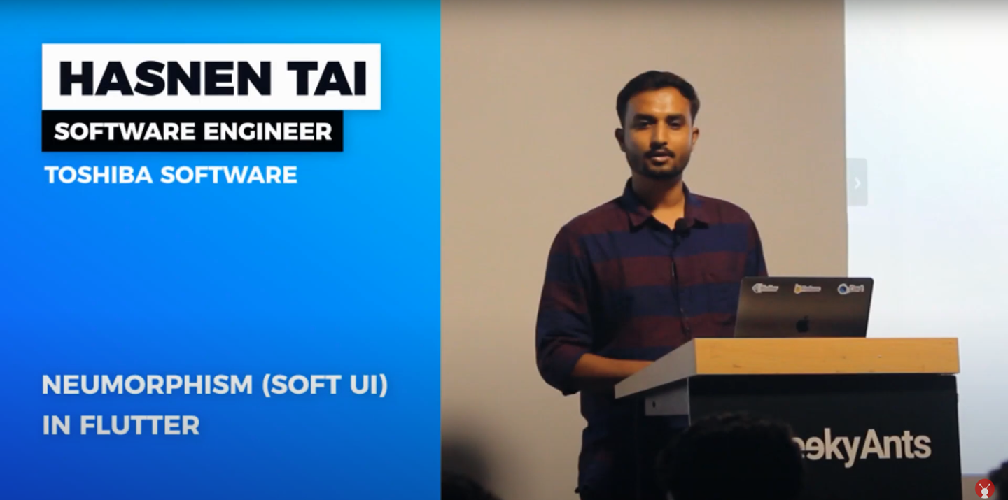 The last talk of the day was by the returning Hasnen Tai, who runs a YouTube channel and brought a brand new topic to the table in Neumorphism which he explained in terms of Flutter. Following the ‘Skeuomorphism’ way of UI design, the industry has started to take more inspiration from the real world and calls it ‘Neumorphism’. He explained the correct method of implementing Neumorphism and showed some examples with code. He also demonstrated an example that he made using the principles of Neumorphism.