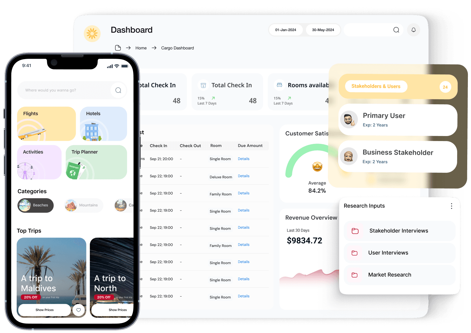 - We conduct user research, perform competitive analysis, and identify market opportunities to ground the project in data.