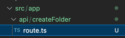 Next.js API Routes allow us to create API endpoints inside our Next.js application. In the pages router, we used to define our API routes in the pages/api directory. But in the new app router, we can define our API routes in the api directory. So let's create a folder called createFolder inside the api directory and create a file called route.ts inside it. This file will contain the code to create a folder inside the shared drive.