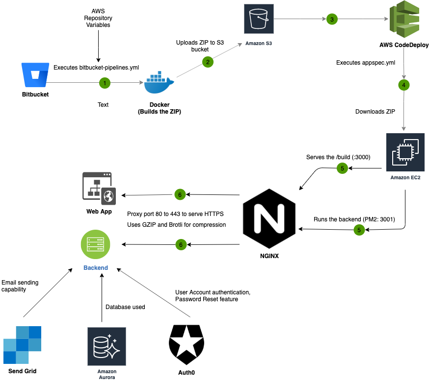 - Deployment was handled through PM2, Docker, AWS CodeDeploy, AWS S3 & BitBucket Pipeline.