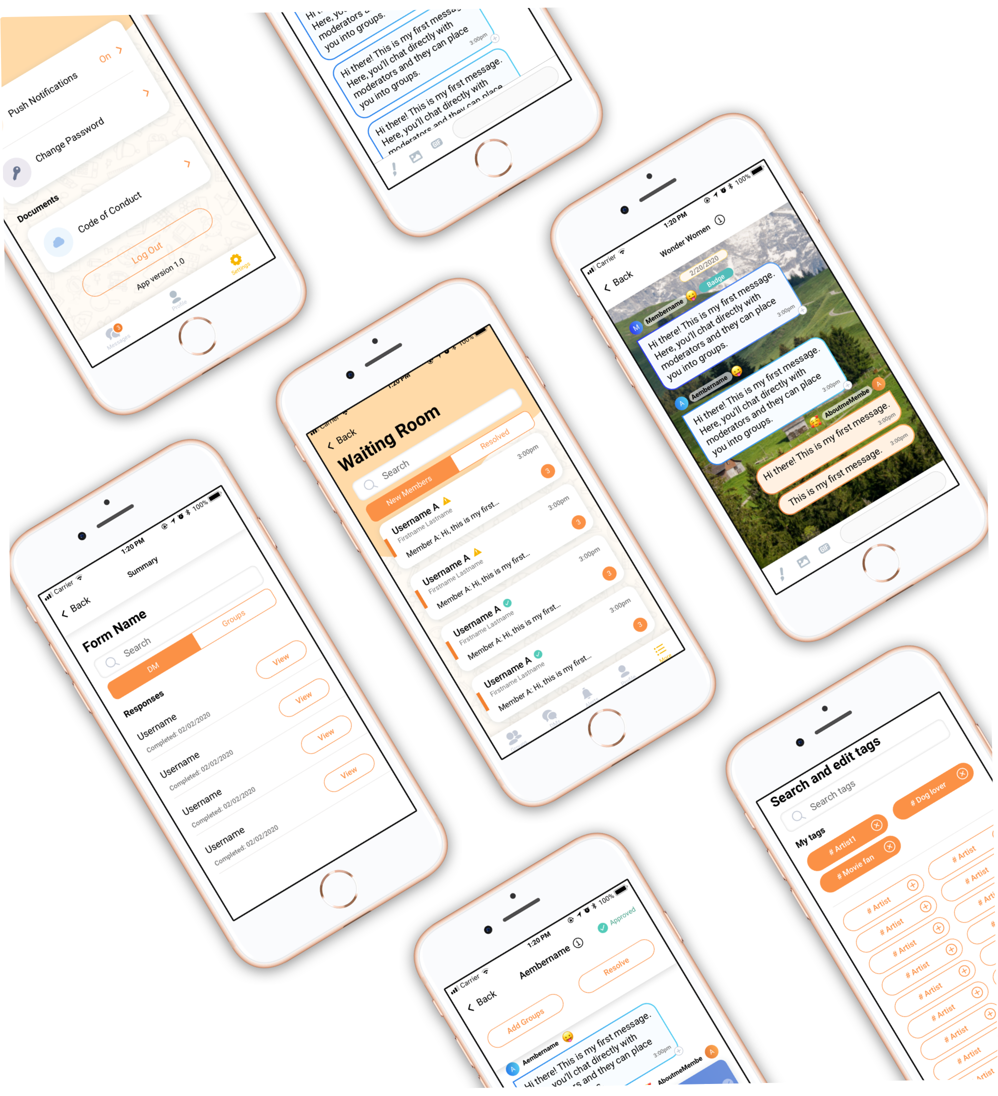 In the development of the app, a combination of React, React Native & FeatherJS was used with Redux & mobx-state-tree to manage states. The first features that were implemented were account creation and authentication based (sign-up, sign-in, forgot password etc.), followed by chat room creation, adding/removing users, waiting screens, forms creation, filling and response storage, crash reports, customization tools, dark mode et cetera. A new feature of icebreakers was added in the apps which were introductory messages for new patients in a user group. All these features were discussed on by the client and the dev. team for application, feasibility and relevance before actual implementation. The feature was then created, shared with the client and then integrated with the entire app.