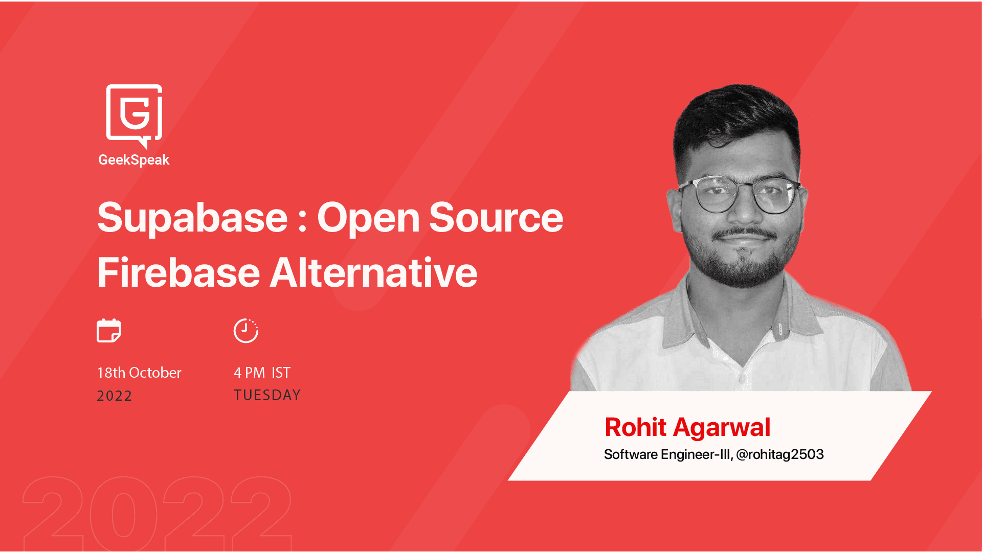 In this episode of GeekSpeak, Rohit Agarwal, Software Engineer - III, GeekyAnts, talked about Supabase, an open-source alternative to Firebase.