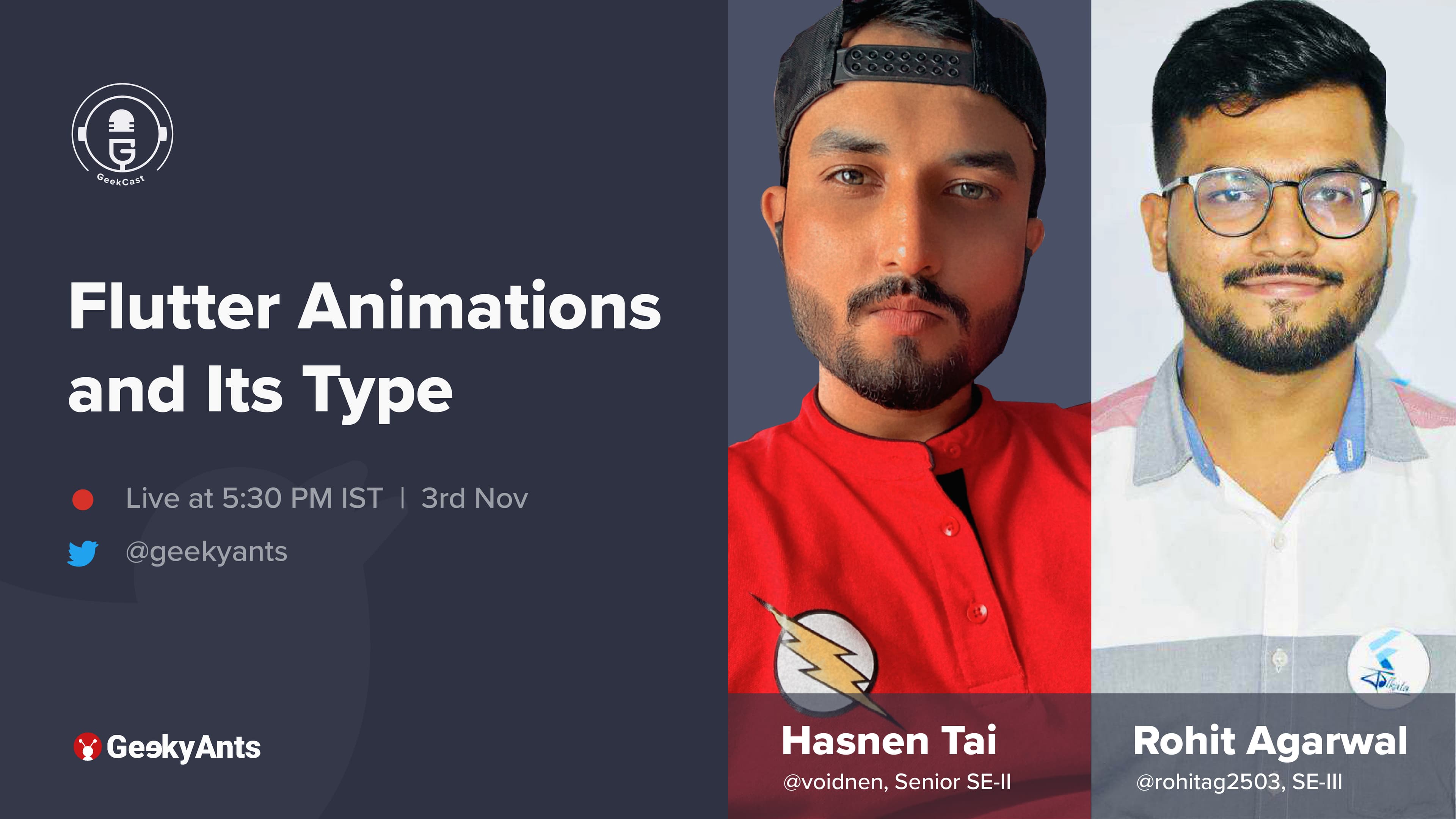 In the latest episode of GeekCast, our geeks, Hasnen Tai, Sr. Software Engineer - II, and Rohit Agarwal, Software Engineer - III, talked about animations in Flutter and its types.