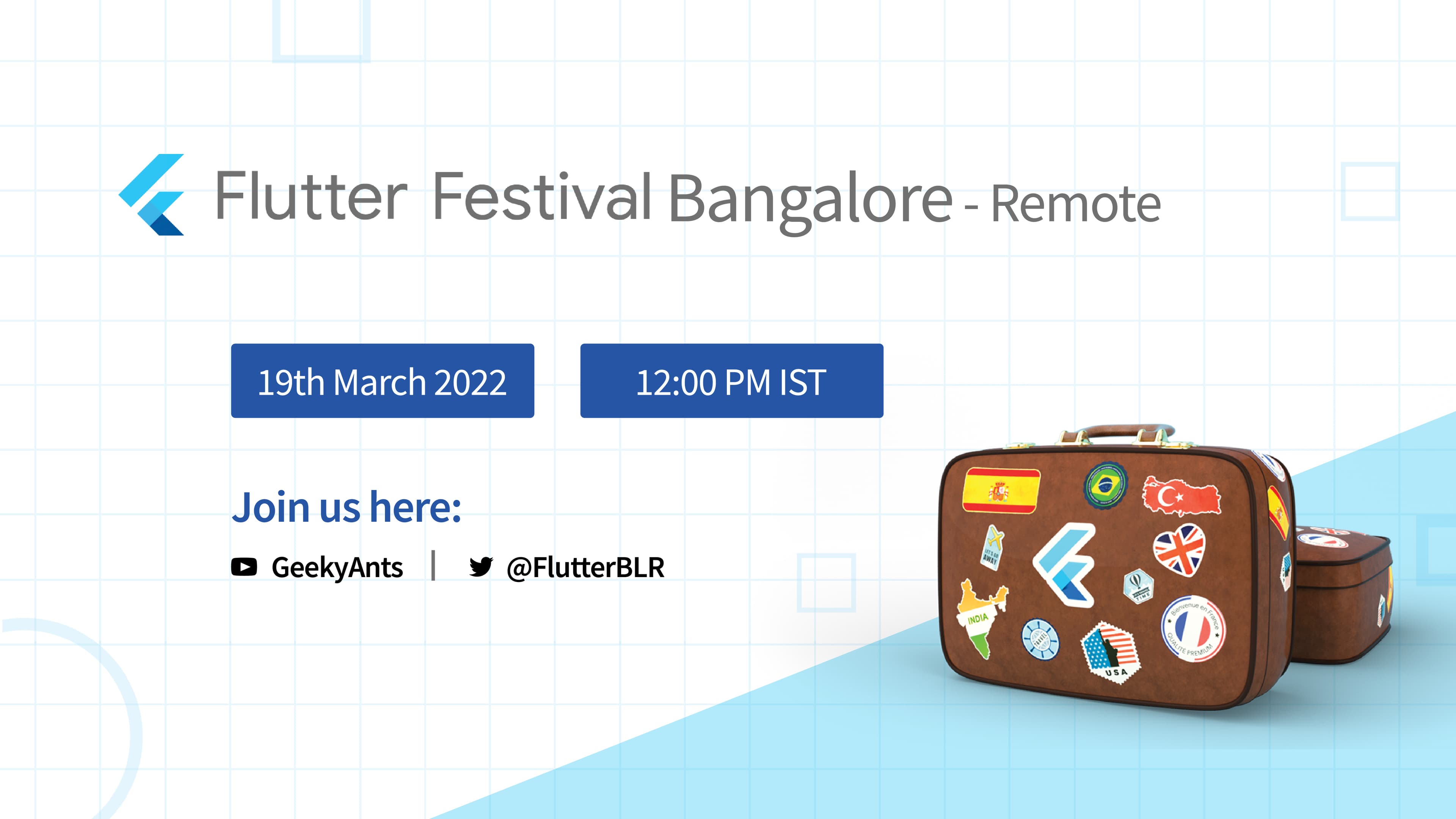 Flutter Festival Bangalore Meetup happening this month on 19th March at 12 PM IST. Join us as a speaker, grab the opportunity to share your knowledge with the Flutter community.
