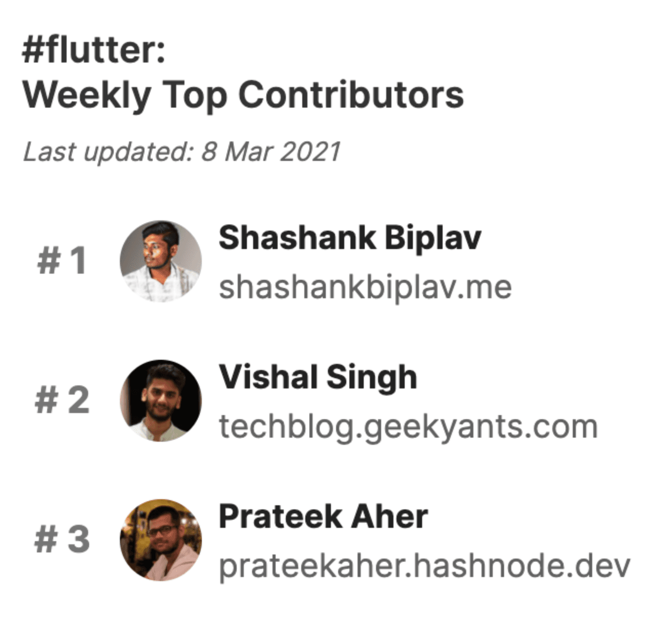 Vishal Singh was featured in Hashnode's Top Weekly Contributors this week. Great work, Vishal! Read his full article on Routing on Flutter Web here.