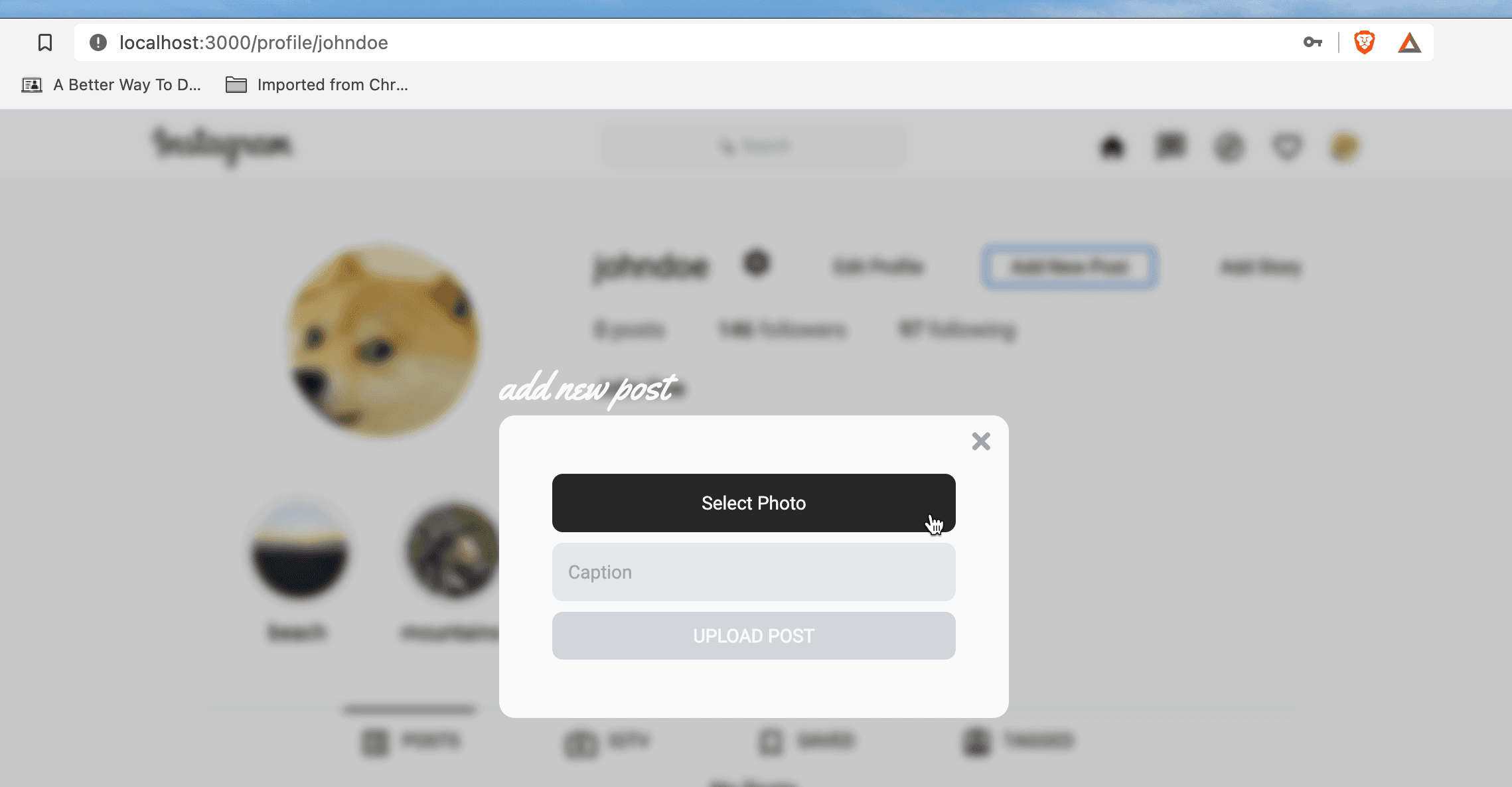 Aman Sharma & Rohit Sharma created an Instagram web version that allows users to upload posts. Built using React + Tailwind CSS, Express & Amazon S3. Keep up the great work!