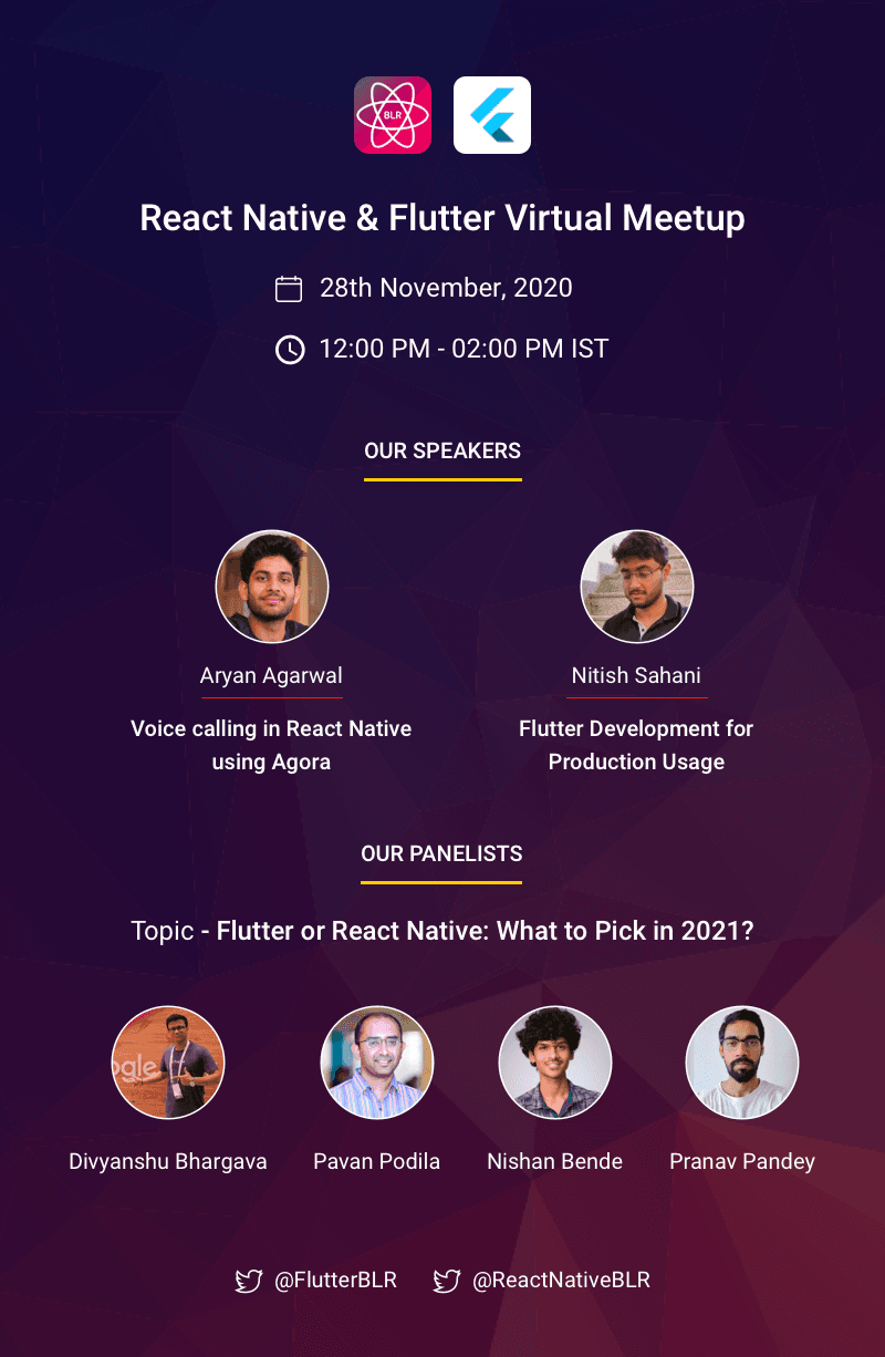React Native & Flutter Virtual Meetup | RNBLR x FlutterBLR x GeekyAnts