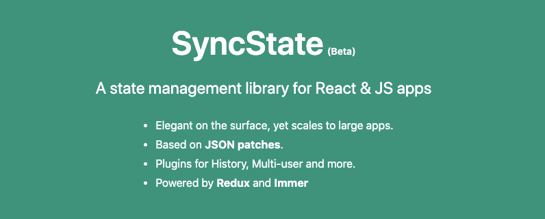 SyncState is the newest open-source State Management library for React & JavaScript apps that is based on JSON Patches.
