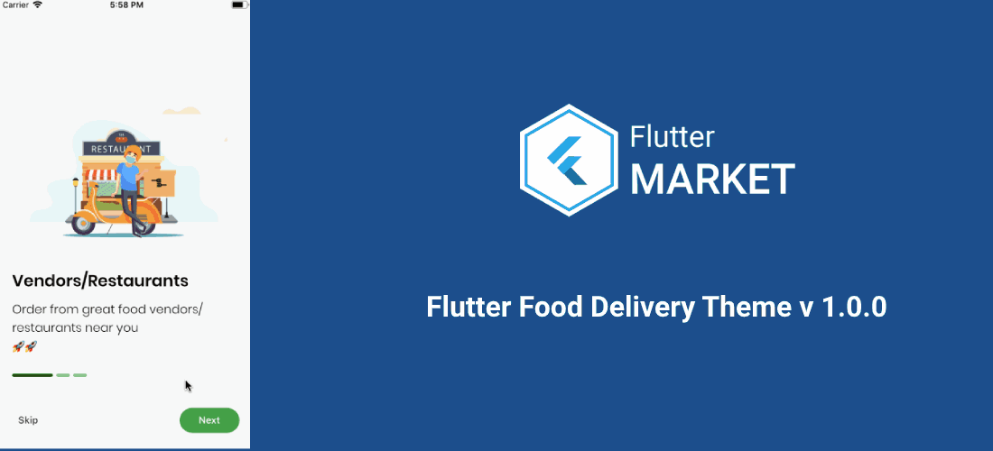 The latest product to be launched in the Flutter Market is Flutter Food Delivery UI kit, that can be used to build apps for online food delivery, grocery, pharmacy, store delivery applications for Android and iOS. It is fully customizable and user-friendly with smooth animations.